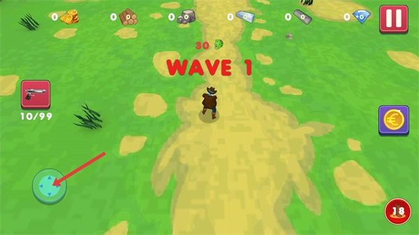 4、当僵尸靠近时,点击枪的图标即可开火射杀僵尸。