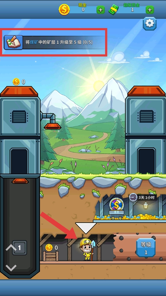 4、完成开启矿层1的任务后,接着承接【把煤矿里的矿层1升级到5级】的任务,借助升级矿层来提高采矿效率。