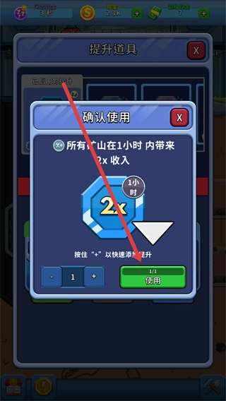 2、在道具栏中找到收入提升道具,点击使用按钮。