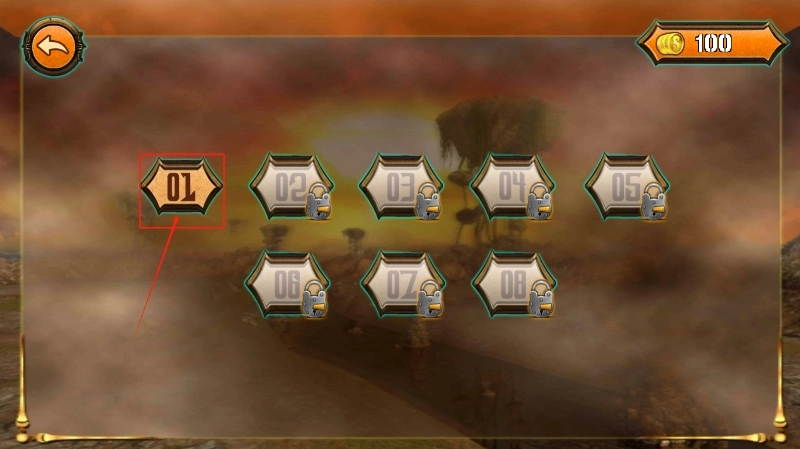 3、点击编号01的六边形按钮即可开启第一关,其余带有锁图标的关卡需要满足解锁条件后才能进行挑战。