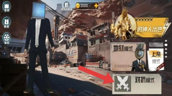 1、包含电视机头角色、金币、功能按钮、游戏模式以及“时钟人出世”相关宣传内容,支持签到、换装、抽奖等功能操作,还能选择对抗模式等不同玩法来开展游戏。