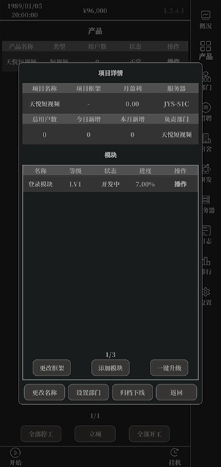 模块的升级等级越高,收入的产生速度就越快,建议优先对核心模块进行升级。