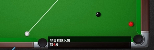 1、将非目标球打入袋中;例如,在击打红球的过程中,若黑球意外入袋,则需扣除黑球对应的分值;若是击打彩球时,目标彩球未入袋,反而有其他颜色的球入袋,那么就按照该入袋的其他颜色球的分值进行扣分,扣分最低为4分,若该球分值低于4分,则按4分扣除。