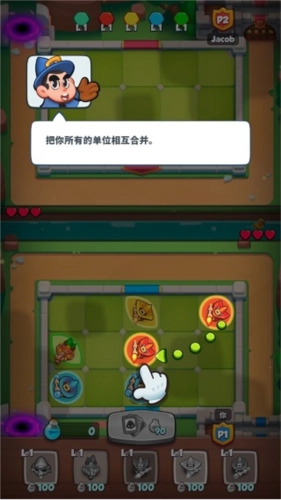 按照上述方法,先召唤作战单位,每两个相同等级的兵种就能进行合成