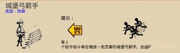 城堡弓箭手:当玩家点击启动城堡防御机制后,该单位便会开始运作,且其行动无需玩家操控。