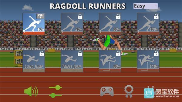 1、启动Ragdoll Runners游戏后,我们可以选择游戏难度,点击右上角即可进行选择,这里建议新手玩家先从最简单的难度开始练习。