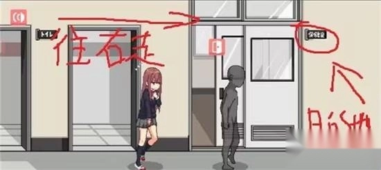 3. 等姬川同学起身之后,向左走,看到一个【门的标志】就点击它,然后出去。