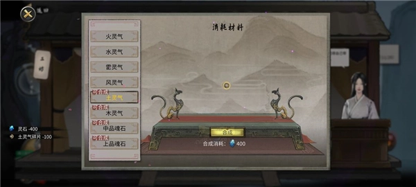 木和土的灵气刷完碎片后去城镇工坊合成