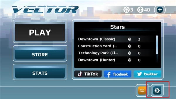 1、在本站的矢量跑酷中文版里,进入游戏界面后,点击右下角的齿轮图标。