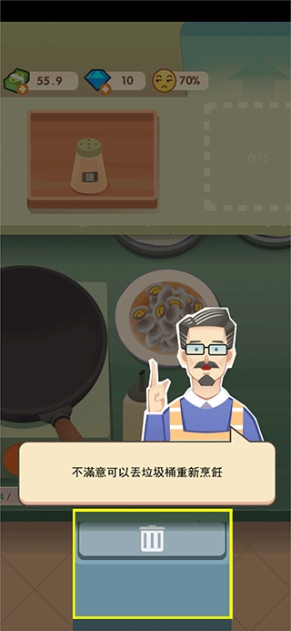 第八步:当菜品不满意时可以丢垃圾桶重新烹饪