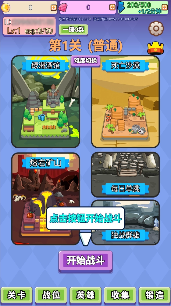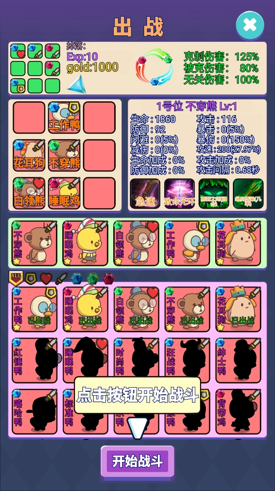 1、开启游戏后,点击屏幕上醒目的胶机按钮就能进入新战斗挑战的准备环节。