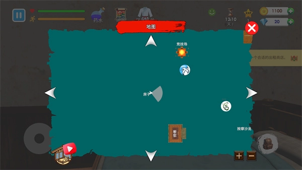 3、还能随时打开最上方中间的地图,查看不同建筑物的所在位置。