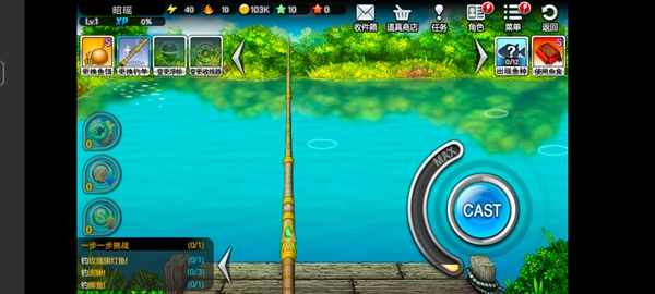 5、进入游戏如图,玩家需甩杆进水中。