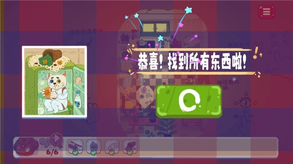 6、找到所有物品即可闯关成功,开始下一关。