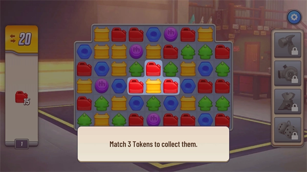 5、你的目标是通过移动图案的位置,让三个或更多相同的图案连成一线。一旦匹配成功,这些图案就会消除并为你增加分数,当达到左侧显示的目标分数时,你就能顺利过关。