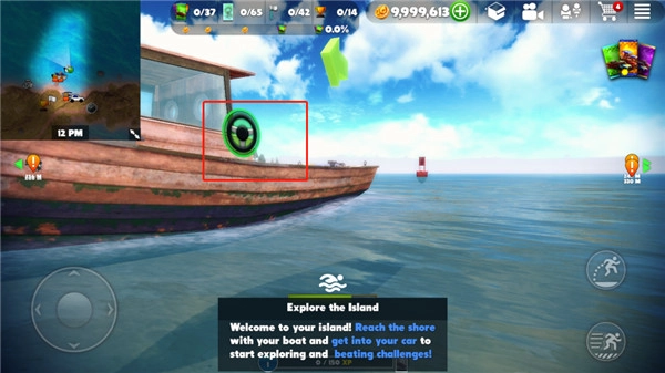进入游戏后,玩家会处于一艘船上,可借助左侧按键操控方向,右侧按键则用于控制油门与刹车。