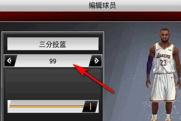 5、选择“三分投篮”项进行调整。