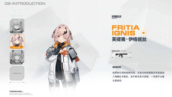 海姆达尔部队的一员,曾是瓦尔基里电竞领域的顶尖选手。性格热情开朗,以偶像士兵的身份在军中活跃,将里芙当作宿命般的对手。