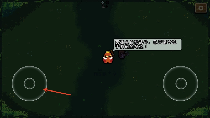 5、左侧轮盘用于操控移动方向,英雄会自动进行战斗,你只需专注调整站位就行。