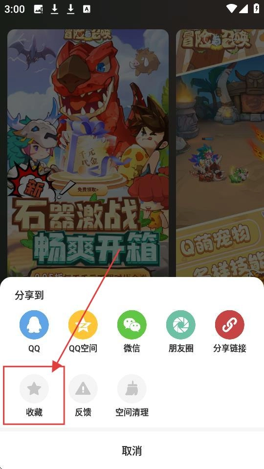 3、弹出操作选项后,若想收藏该游戏,点击【收藏】,就能尝试收藏操作啦。