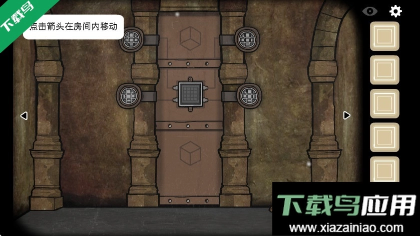 3、依照提示点亮机关门的第一盏灯,灯光映亮墙上的壁画。