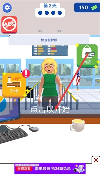 1、点击界面中的点击以开始按钮,进入护照检查的关卡。