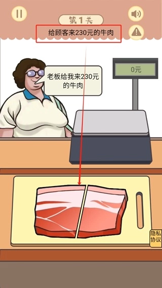 3.完成首单:根据游戏指引,切割牛肉以达到顾客要求的重量和金额。