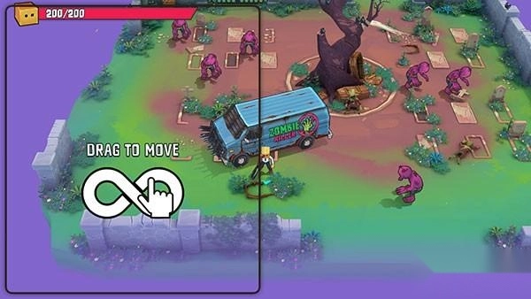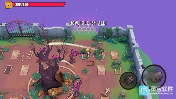 1、首先好本站带来的盒子头僵尸必须死,进入首页,开始教程,玩家通过左边滑动来控制角色的移动;