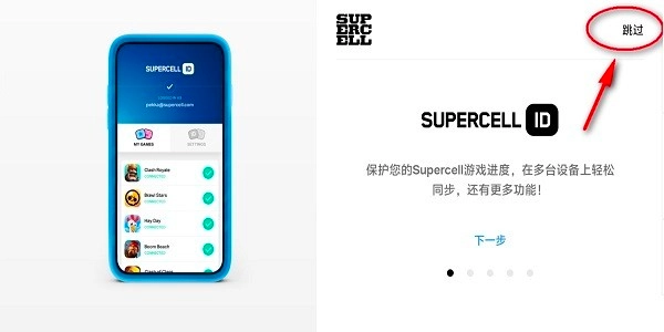 进入对应界面后,会看到关于SUPERCELLID的相关说明,此时直接选择“跳过”选项即可。
