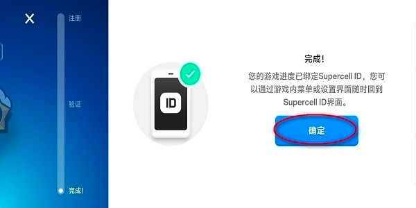 Supercell ID的绑定流程已顺利完成,现在只需点击“确定”按钮就可以啦!
