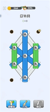在部分关卡中,会融入需要动脑筋的设计。玩家得通过梳理逻辑来判断不同螺丝的适配位置,偶尔还得想办法突破物理层面的阻碍才能推进。