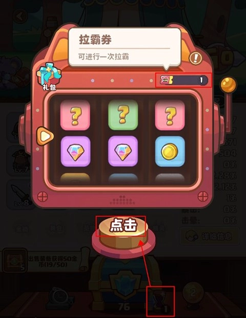 游戏里设有特殊道具“拉霸券”,玩家能通过完成任务、参与活动等途径得到它,点击宝箱右边的沙漏就能开启拉霸抽奖,说不定能开出神装。