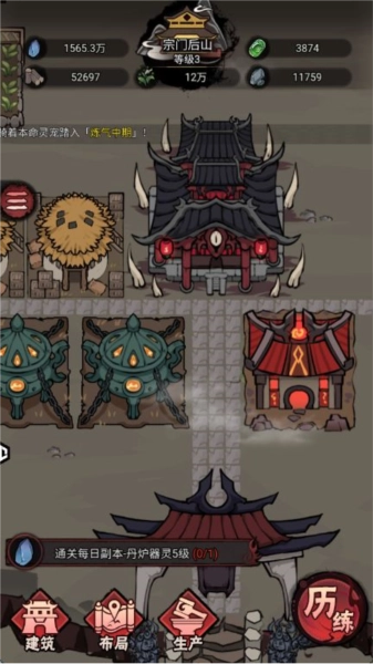 当自身境界达到要求时,应优先提升宗门大殿的等级。升级各类建筑所需的木材和矿石,都需要宗门达到相应等级才能进行筹备。只有建筑等级足够高,才能炼制高阶丹药。