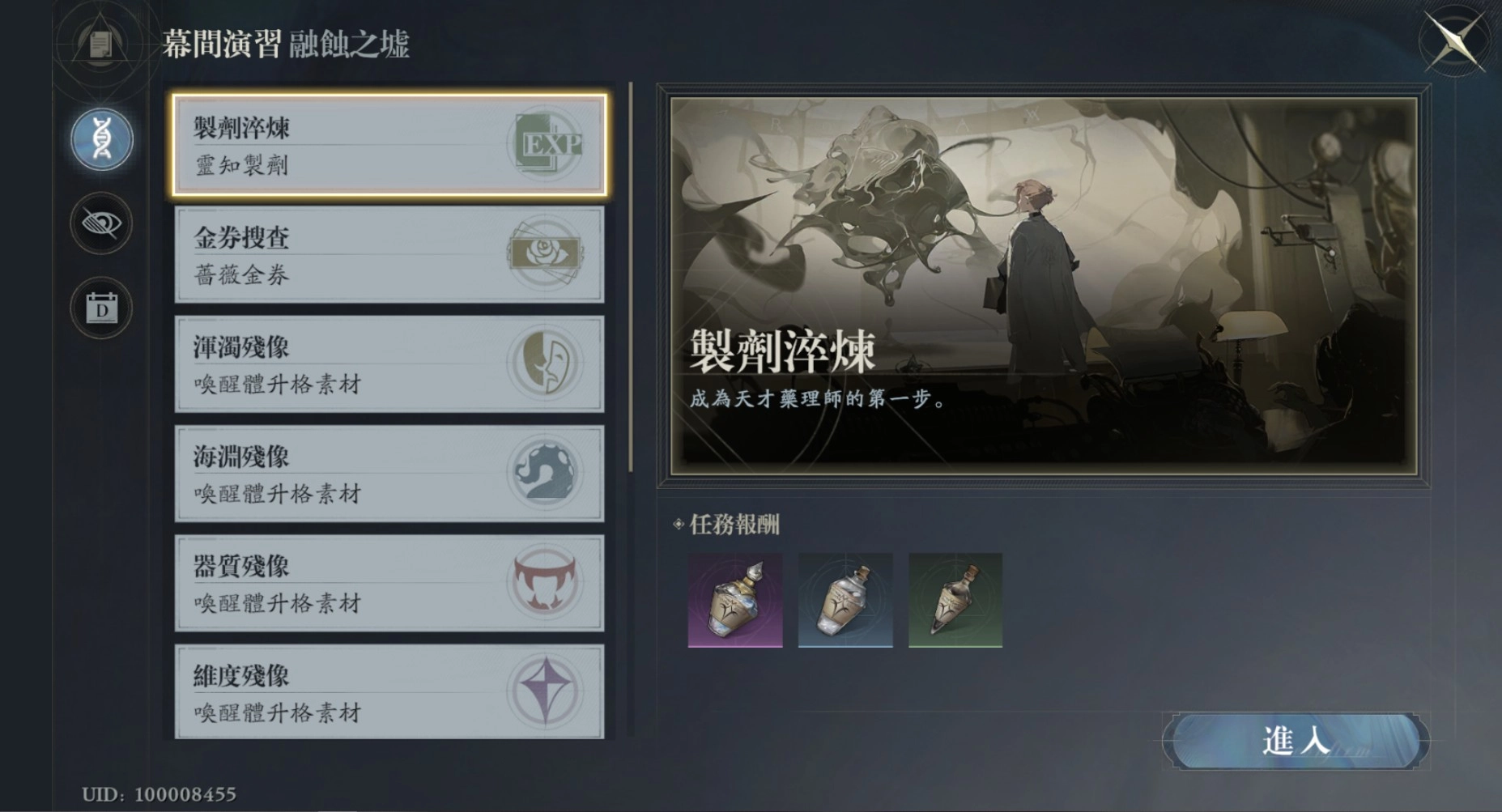 完成主线特定章节后,消耗体力进入融蚀之墟的对应关卡,就能获取角色成长所需的各类资源——包括提升等级的金券、制剂,以及突破阶段的素材,这些都能在幕间演戏玩法中找到获取途径。