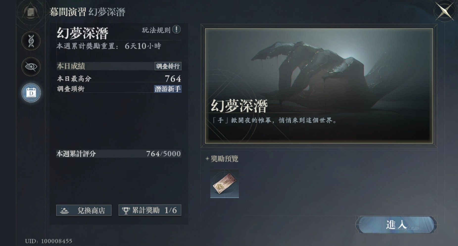 最后的关卡就是每周刷新一次的幻梦深潜了