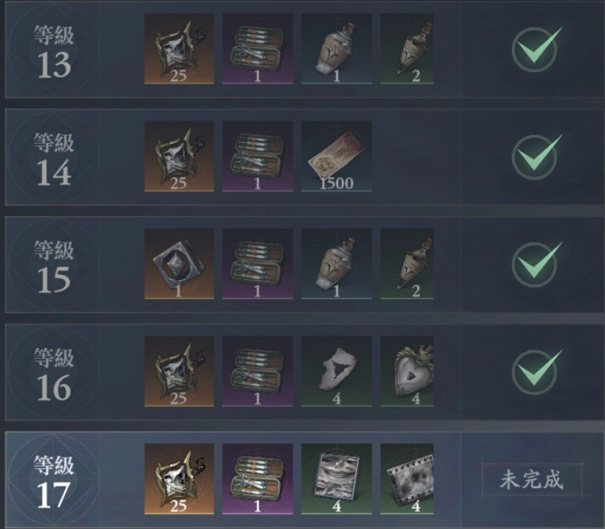 调查员每次等级提升时,都能获得相应的丰厚奖励。