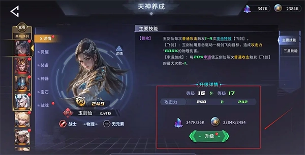天神除了自身的养成外,还能对神器进行养成。解锁神器需要对应的天神神器碎片,这些碎片可在支线关卡中获取。神器本身支持升级,升级后不仅能提升天神的伤害,还会增加神器自身的宝石插槽数量。
