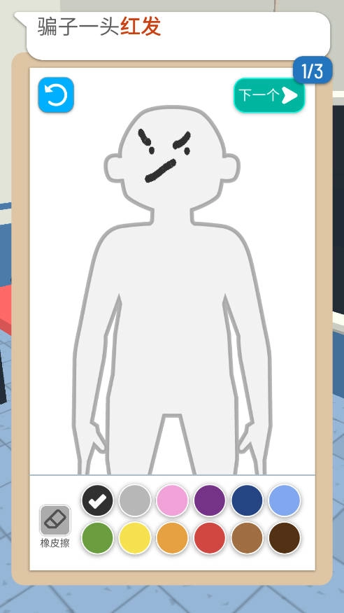 依据受害者的描述,在游戏的操作界面中,通过画笔工具勾勒出嫌疑人的外貌特点。