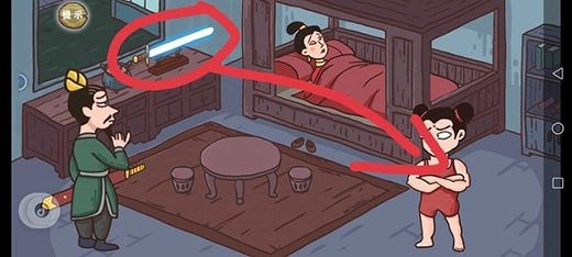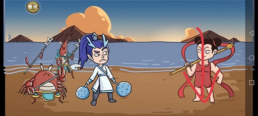 第二关的操作步骤是:先点击李靖,在他说话时把衣服拖给太乙,接着在肚子位置向左滑动,最后点击月亮。