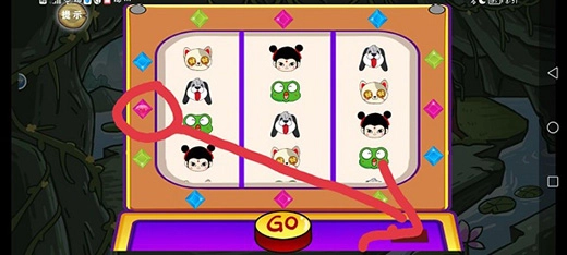 第六关的操作步骤是:先将洞口处的牌拖到太乙身上,接着按照图示把钻石拖进投币口,之后就能开始游戏啦。