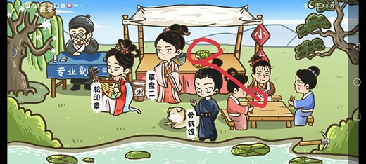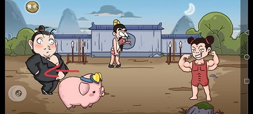 第九关:第一个步骤:点击金猪会掉落一枚铜钱,接着把铜钱和骨头一起拖给狗
