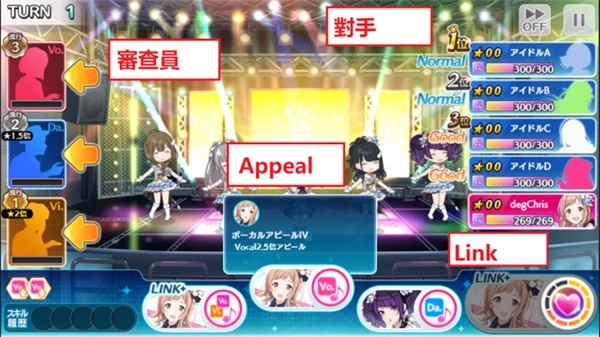 有一个独特的Appeal类技能名为Link+。每次执行Appeal操作,都会累积Link+的进度值,当进度条填满时即可触发Link+效果。若玩家还能满足一项额外要求——在最近五次Appeal过程中,特定角色参与过Appeal环节,就能进一步激活Link Appeal,从而获得各类奖励或增益效果。