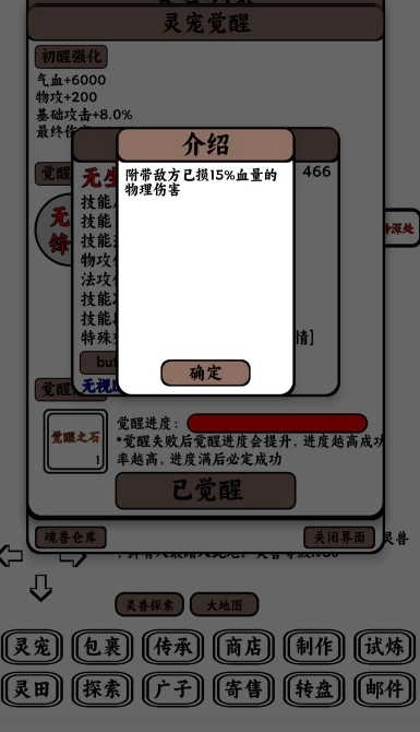 技能:宠物升级自动领悟技能,领悟技能的池子是在宠物自身五行属性里面随机选,金木属性就只可能学金属性和木属性,需要注意,宠物1级到100级之前升级都会随机给技能,但是在抓到时可以看技能多少来决定升级培养与否。