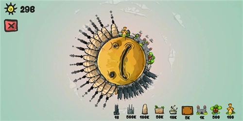 在游戏的前中期阶段,随着生产资源的建筑物不断增多、灰色小人数量持续增加,地球的绿色区域开始一点点减少,慢慢向黄色转变,原本带着笑脸的地球,表情也渐渐失去了往日的愉悦。