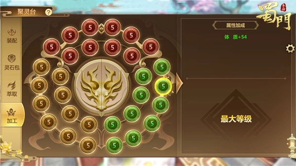 聚灵台还有个特别的玩法,就是可以对灵石进行加工。各位蜀友只要消耗一级灵石就能参与,这个加工过程能有效提升自身战力,而且不同颜色槽位的灵石加工后,还会带来不一样的属性加成,绝对是蜀友们增强实力、成为顶尖玩家的重要方式。