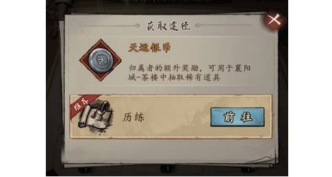 之后参与各类【历练】活动,都有机会概率获得【天运银币】。