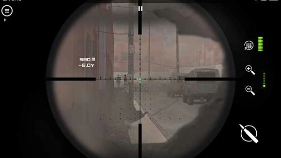 接下来会遇到需要狙击操作的关卡,建议先花时间观察环境细节,但要留意时间限制——从进入该场景到敌方狙击手首次射击,中间有32秒的准备窗口。操作上推荐保持基础瞄准镜状态,不额外放大倍数;等对方先开枪暴露位置后,立刻锁定其所在方位并射击,即可完成当前环节。(附敌方狙击手的特写示意图)