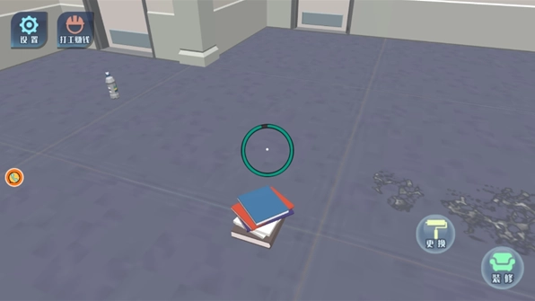 用户能够依据界面内的指引进行清洁操作,通过点击或滑动屏幕来调整视角,再利用控制按钮完成垃圾清理任务。