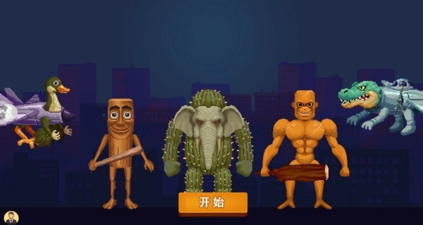 游戏开局可挑选别具一格的生物角色,像仙人掌大象、肌肉男这类,每个角色都具备独特的战斗特性,选好角色后点击“开始”按钮就能开启战斗。