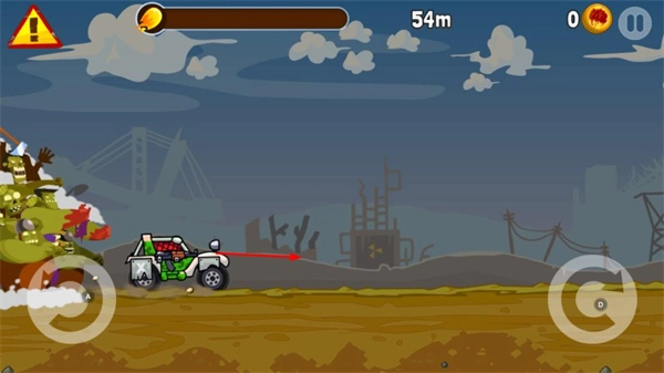 控制车辆在地形上行驶,注意前方的障碍和僵尸,维持行驶的节奏,努力增加行驶的距离。